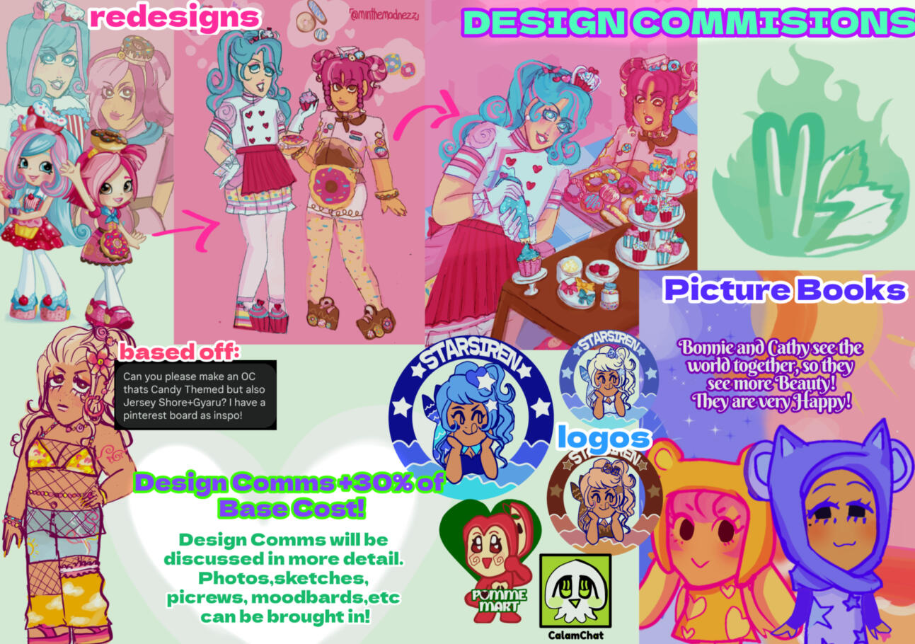 Design Commisions can be discussed! Reference Photos/Sketches/Picrews/PinterestBoards etc can be brought in!